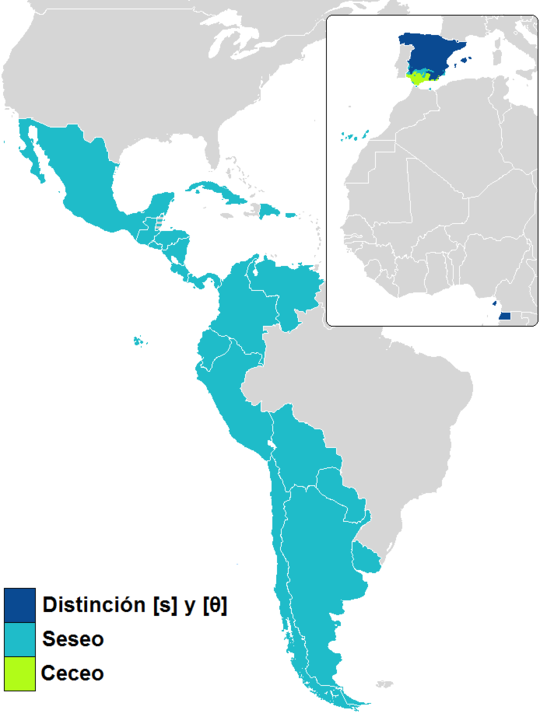 - I Sydamerika, Centralamerika och vissa delar av södra Spanien läspar man inte. Där uttalas C som svensk S när det står framför e och i. Z uttalas också som ett s.