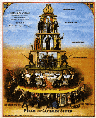 -Under Marx egen tid, som han betecknade som det kapitalistiska samhällets epok, var det kapitalägarna som sög ut de egendomlösa arbetarna, proletärerna. Marx menade att klyftan mellan kapitalägare och prolätaren skulle bli större och större.