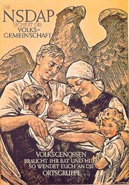Till grund för den nazistiska ideologin ligger begreppet "folk" eller "ras". Staten skall underordnas folket eller rasen, liksom individen och samhällsgruppen skall underordnas staten. Enligt Hitler är staten ett medel, ej ett mål. Det mål, som staten skall tjäna, är att bevara rasen. Den tyska staten skulle alltså bevara den ariska rasen. Han ansåg också att människans historiska utveckling är en biologisk utveckling, präglad av naturligt urval eller kamp för tillvaron.