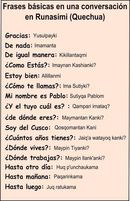 Español y quechua son los idiomas oficiales de Perú, pero hay aproximadamente 90 idiomas en Perú.