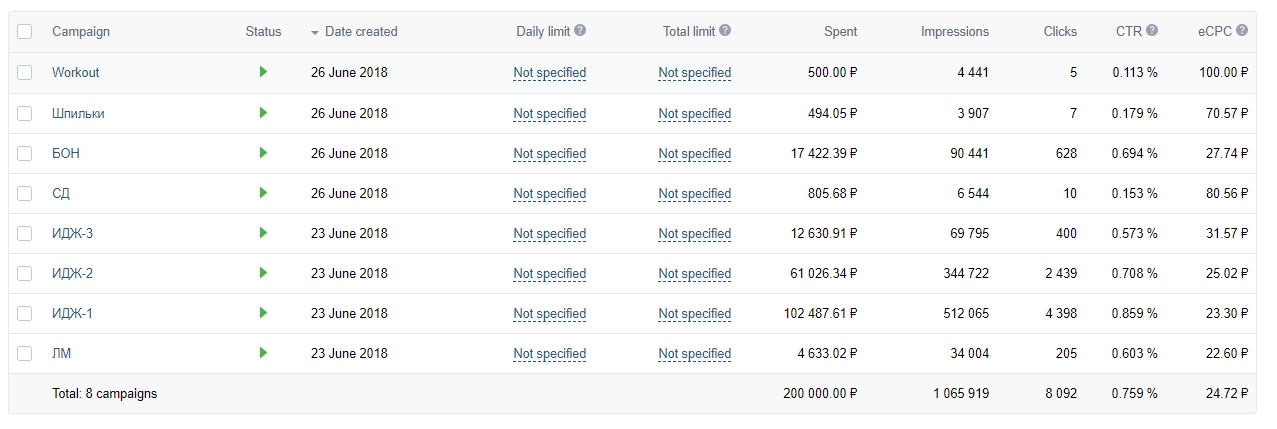 1 недели нужно было получить около 9000 сеансов по ГА. Нужно было фактически сделать около 18000 кликов по рекламному кабинету.