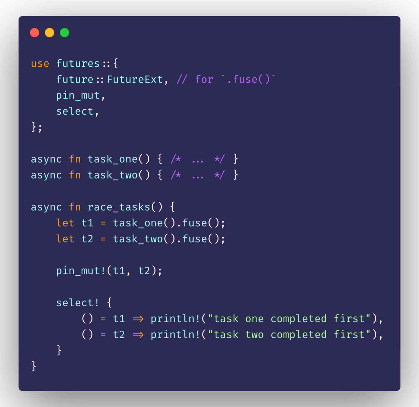 - Here we are offloading our IO-bound operations to async-std and using async/await as our interoperation guide.