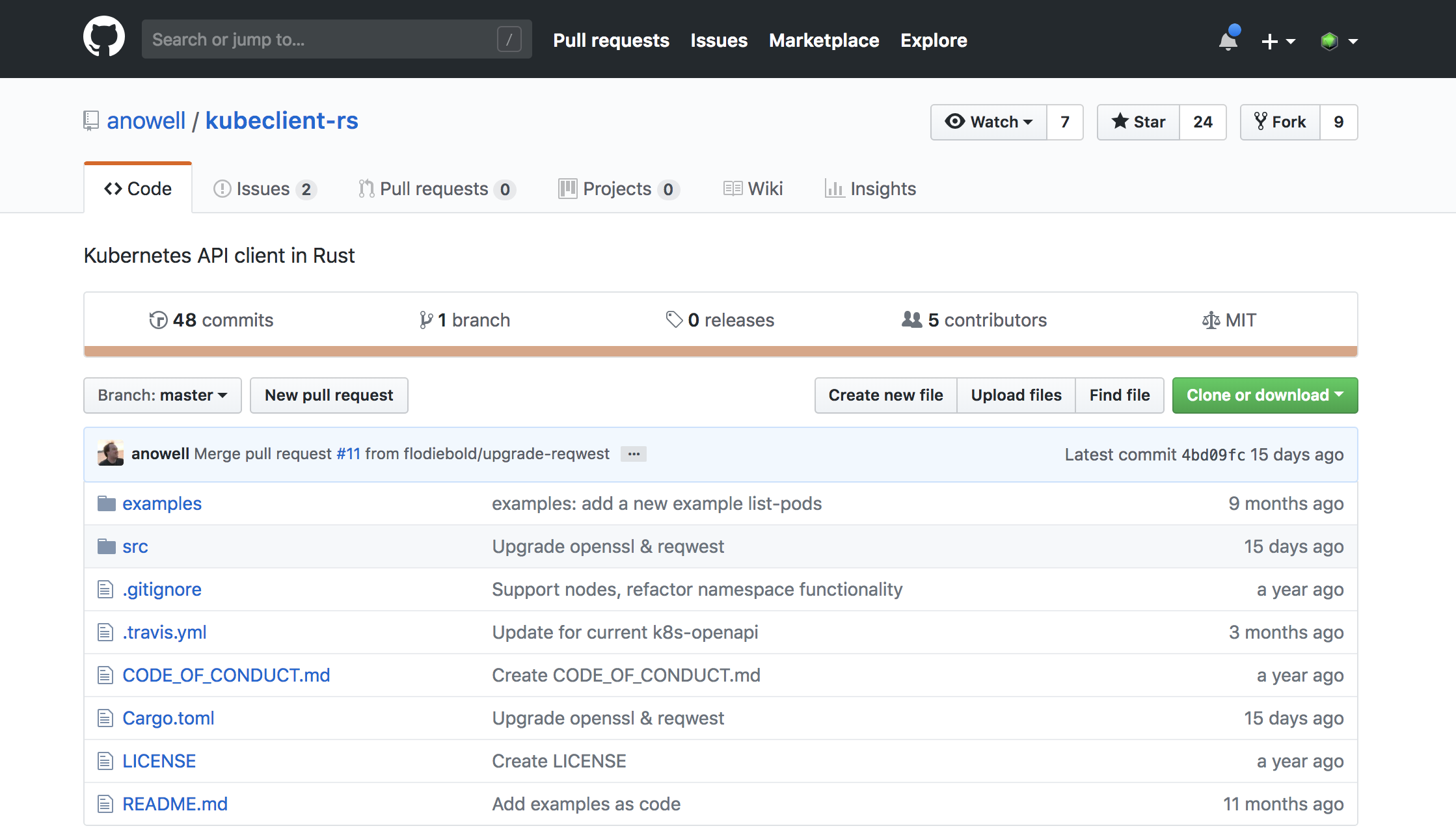 - There is no official K8S client written in Rust.