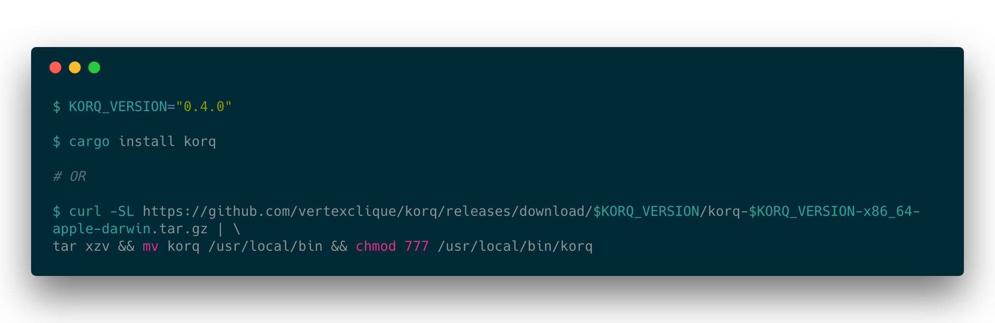 - Latest stable rust (or download directly from project page for your platform – currently MacOS and Linux)
