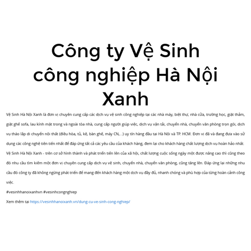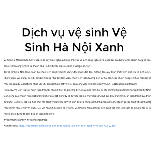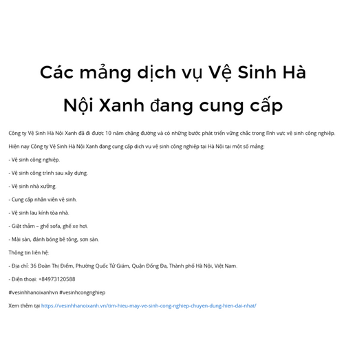 Công ty TNHH Dịch vụ Vệ sinh Công nghiệp Hà Nội Xanh tự hào là nhà cung cấp các dịch vụ vệ sinh uy tín hàng đầu tại Việt Nam. #vesinhhanoixanhvn #vesinhcongnghiep Website: https://vesinhhanoixanh.vn/