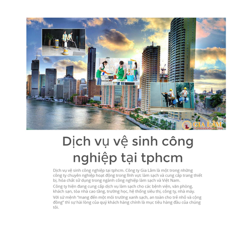 Dịch vụ vệ sinh công nghiệp tại tphcm. Công ty Gia Lâm là một trong những công ty chuyên nghiệp hoạt động trong lĩnh vực làm sạch và cung cấp trang thiết bị, hóa chất sử dụng trong ngành công nghiệp làm sạch và Việt Nam.