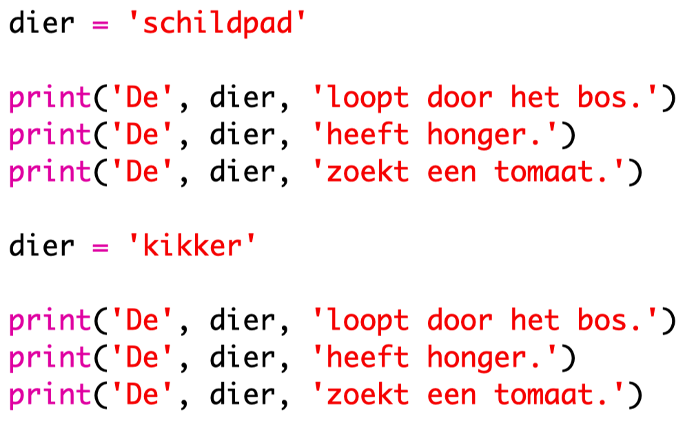 Bijvoorbeeld als je twee keer hetzelfde verhaal wilt maken over een ander dier, zoals in de opdracht 5 van vorige week.