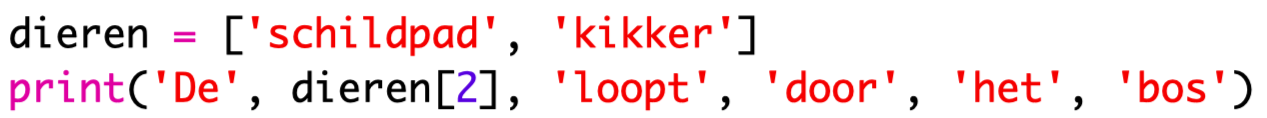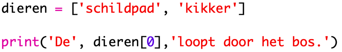 Er zitten nu twee dieren in de lijst, maar hoe gebruiken we die?