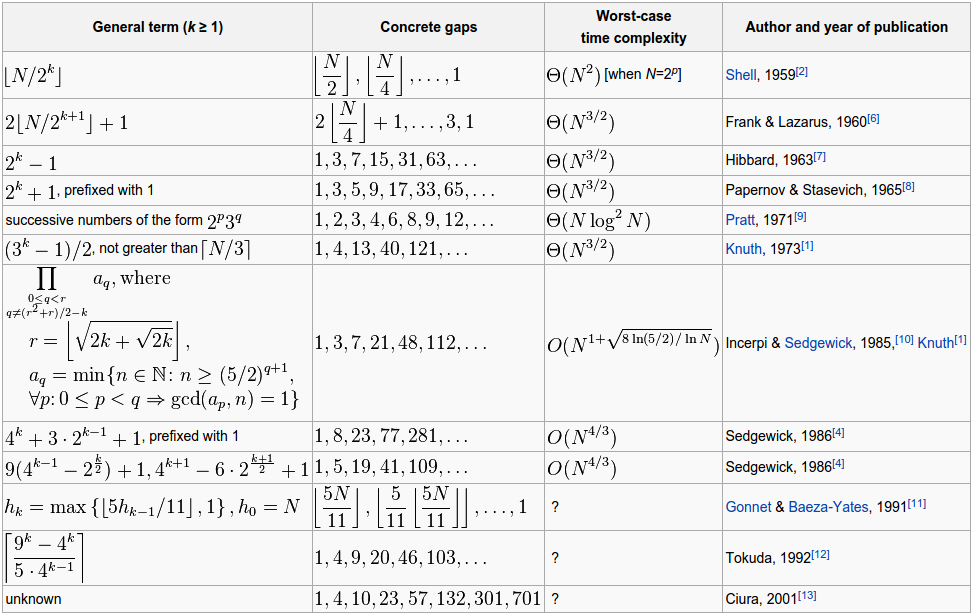 - La complejidad temporal depende de la secuencia de incremento utilizada.
