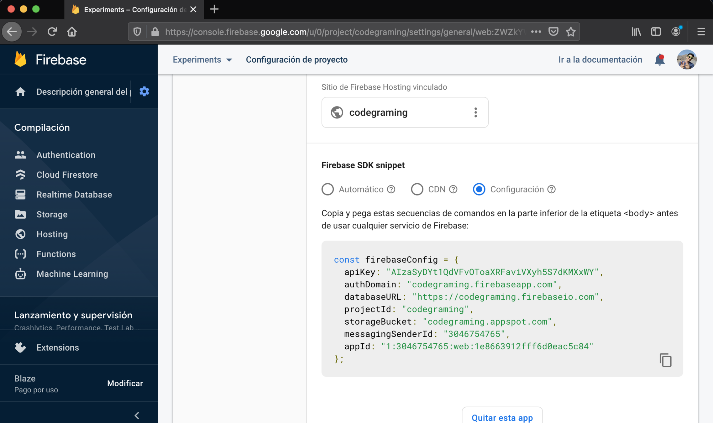 2. Obtener la Config de Firebase para el proyecto