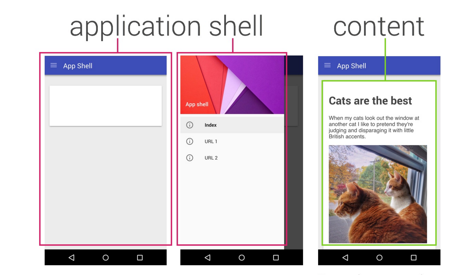 Una App Shell es la cantidad mínima de HTML, CSS y JS que tu web app necesitaría para cargar la primera pantalla.