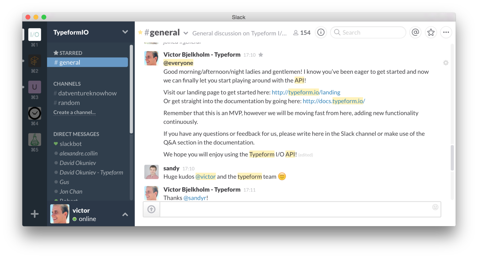 Developer Evangelist at Typeform Currently busy building Typeform I/O, creating typeforms via an API