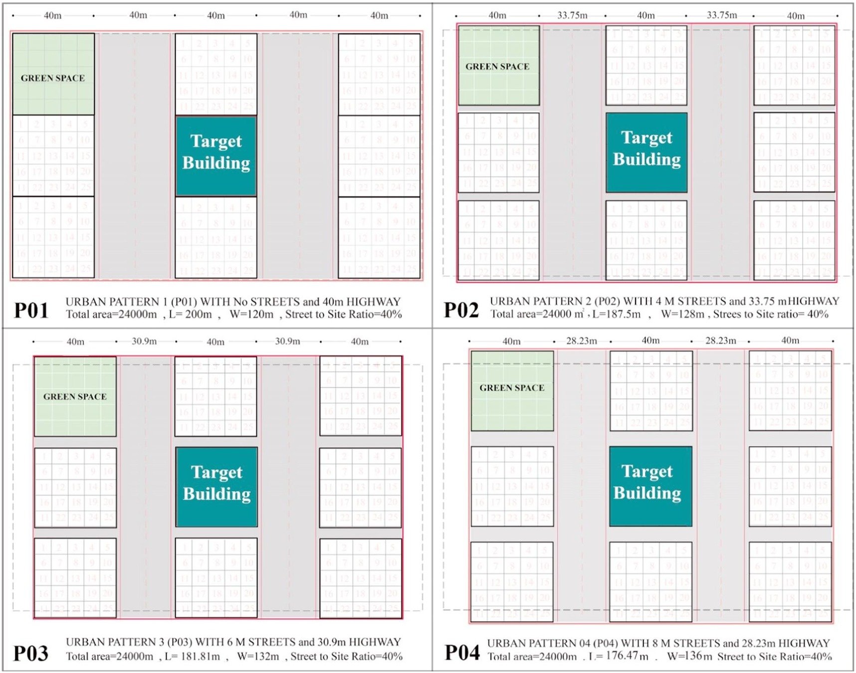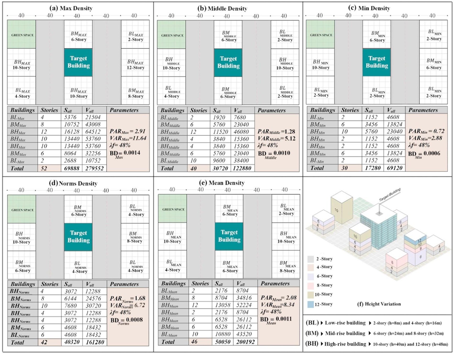 (4) H/W ratio (building height divided by street width)