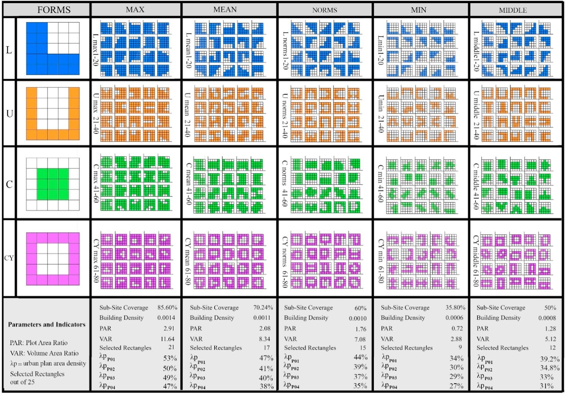 6 most influencing parameters of urban morphology that should be taken into account to save energy for cooling are: