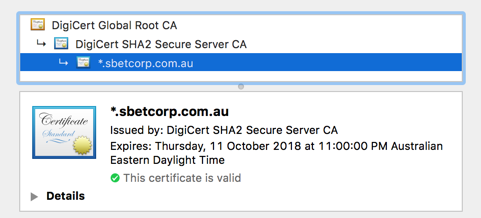 - If required (as in our example), obtain the intermediate certificate (i.e. DigiCert SHA2 Secure Server CA) , convert to PEM and append to the cert.pem