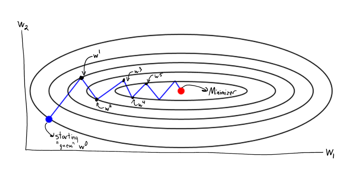 Training/Fitting a ML model is often cast a (uncontrained) optimization problem