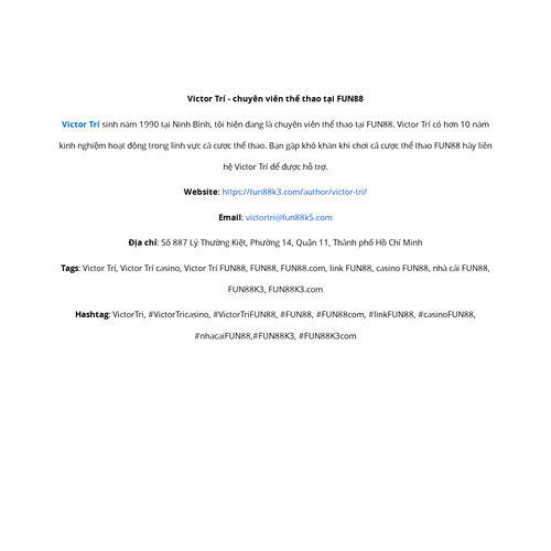Hashtag: VictorTri, #VictorTricasino, #VictorTriFUN88, #FUN88, #FUN88com, #linkFUN88, #casinoFUN88, #nhacaiFUN88,#FUN88K3, #FUN88K3com