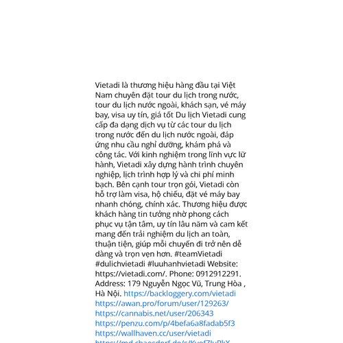 Website: https://vietadi.com/https://vietadi.com/ Vietadi là thương hiệu hàng đầu tại Việt Nam chuyên đặt tour du lịch trong nước, tour du lịch nước ngoài, khách sạn, vé máy bay, visa uy tín, giá tốt Du lịch Vietadi cung cấp đa dạng dịch vụ từ các tour du lịch trong nư
