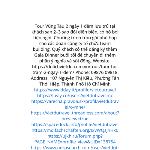 Website: https://dulichvietdu.com.vn/tour/tour-ho-tram-2-ngay-1-dem/ Tour Vũng Tàu 2 ngày 1 đêm lưu trú tại khách sạn 2–3 sao đối diện biển, có hồ bơi tiện nghi. Chương trình trọn gói phù hợp cho các đoàn công ty tổ chức team building. Quý khách có t