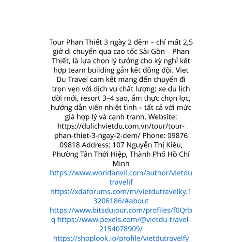 Website: https://dulichvietdu.com.vn/tour/tour-phan-thiet-3-ngay-2-dem/ Tour Phan Thiết 3 ngày 2 đêm – chỉ mất 2,5 giờ di chuyển qua cao tốc Sài Gòn – Phan Thiết, là lựa chọn lý tưởng cho kỳ nghỉ kết hợp team building gắn kết đồng đội. Viet Du Travel