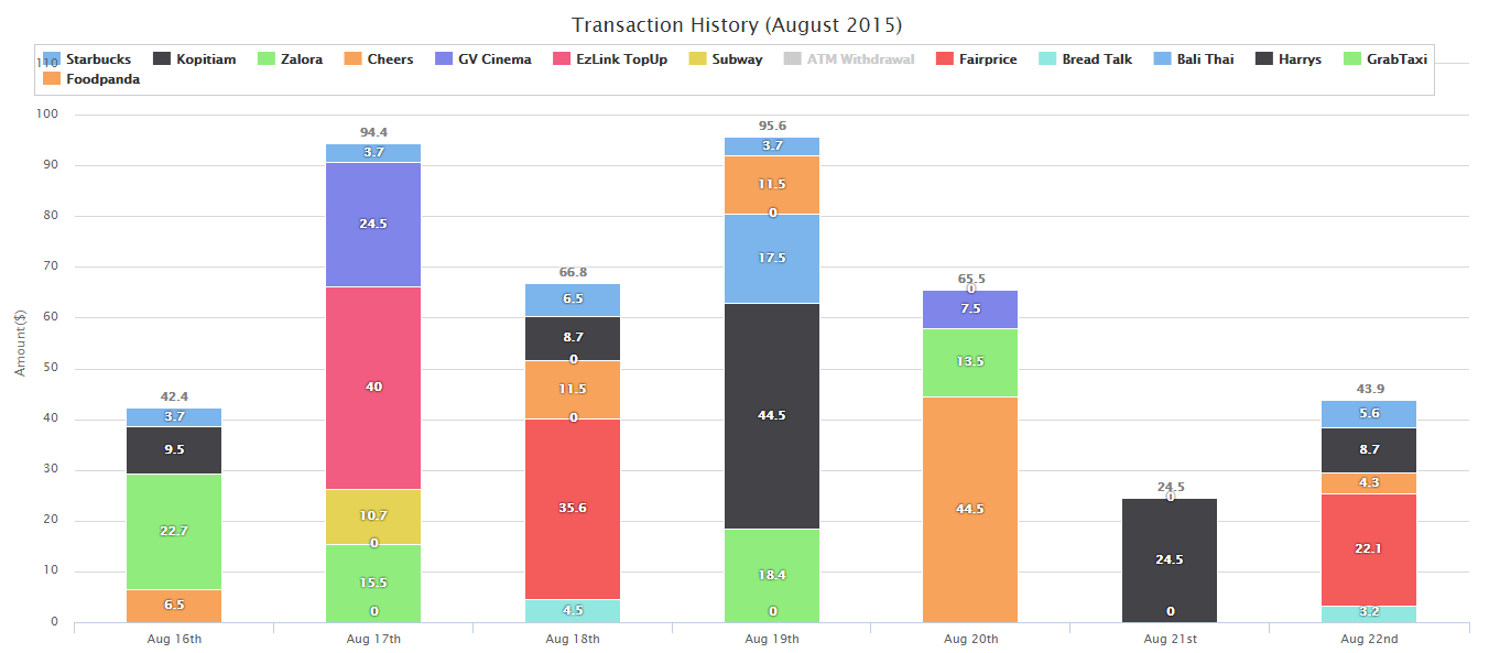 - Filter by transaction type. This means you can see all the days and times in a given month when you have had Starbucks.