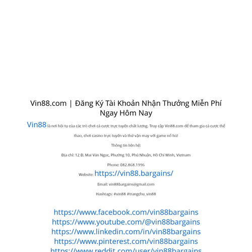 Vin88 là nơi hội tụ của các trò chơi cá cược trực tuyến chất lượng. Truy cập Vin88.com để tham gia cá cược thể thao, chơi casino trực tuyến và thử vận may với game nổ hũ! https://vin88.bargains/