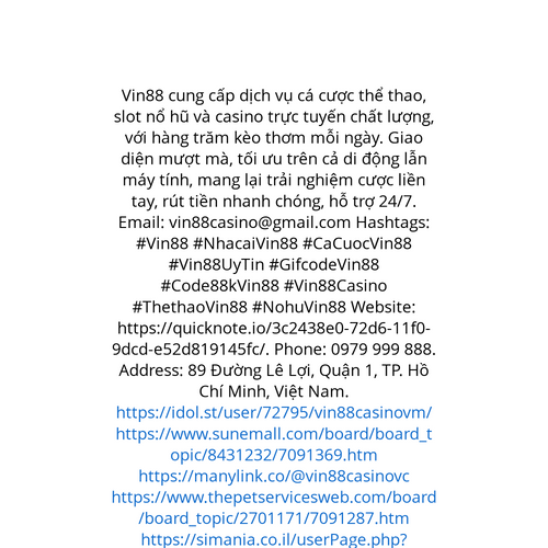 Website: https://quicknote.io/3c2438e0-72d6-11f0-9dcd-e52d819145fc/. Vin88 cung cấp dịch vụ cá cược thể thao, slot nổ hũ và casino trực tuyến chất lượng, với hàng trăm kèo thơm mỗi ngày. Giao diện mượt mà, tối ưu trên cả di động lẫn máy tính, mang lạ