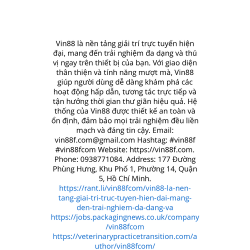 Website: https://vin88f.com. Vin88 là nền tảng giải trí trực tuyến hiện đại, mang đến trải nghiệm đa dạng và thú vị ngay trên thiết bị của bạn. Với giao diện thân thiện và tính năng mượt mà, Vin88 giúp người dùng dễ dàng khám phá các hoạt động hấp dẫ