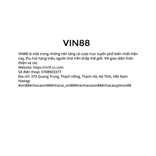 VIN88 là một trong những nền tảng cá cược trực tuyến phổ biến nhất hiện nay, thu hút hàng triệu người chơi trên khắp thế giới. Với giao diện thân thiện và các. Website: https://nrtf.cn.com Số điện thoại: 0708903377