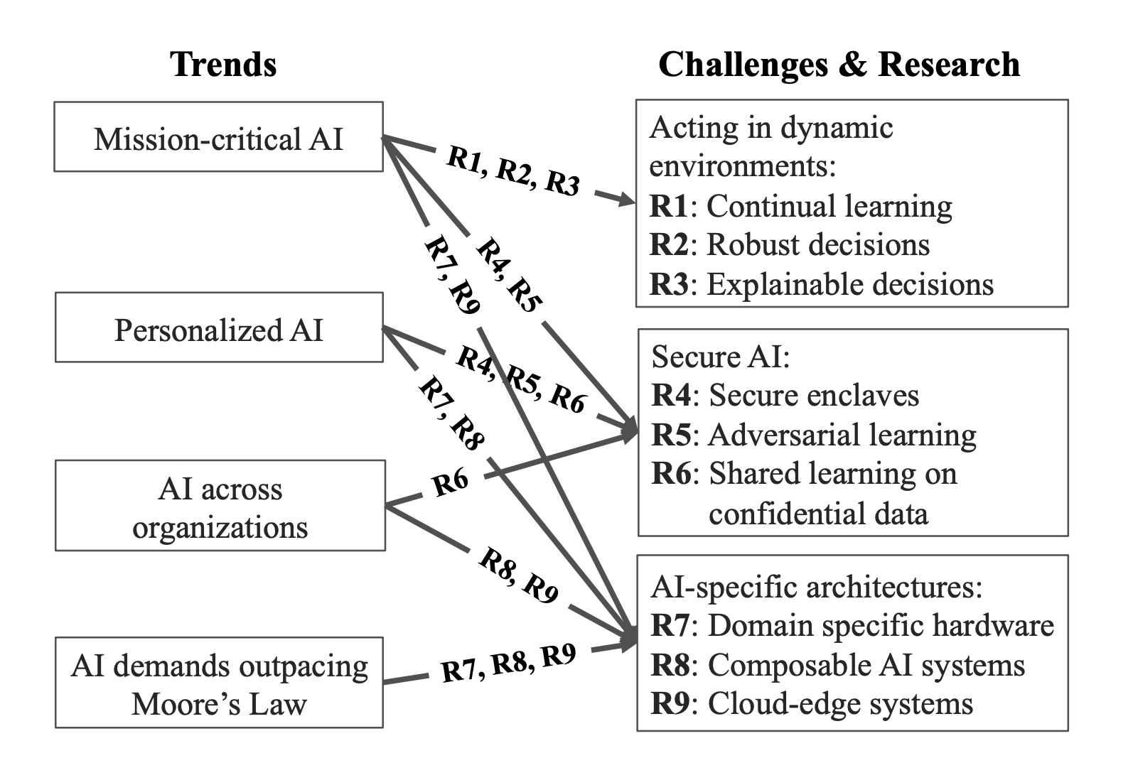 Develop domain-specific architectures and software systems to address the performance needs of future AI applications in the post Moore's Law era