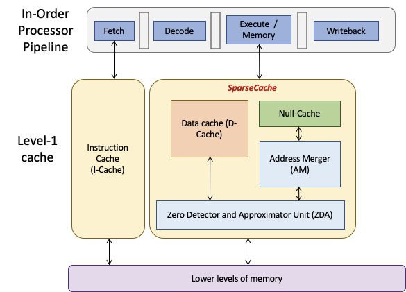 SparseCache was integrated into a low-end Intel processor (configuration similar to Intel Galileo boards) and evaluated using an in-house developed x86 simulator based on Intel’s pin-tool
