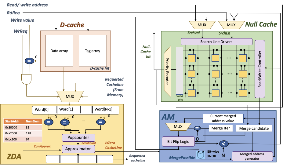 - A Zero Detector and Approximator to detect zero-cache lines and approximate near zero-cache lines (Challenge 1)