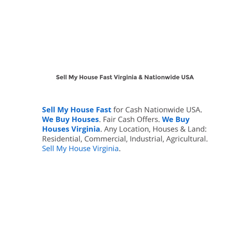 <a href="https://www.sellmyhousefastvirginia.com">Sell My House Fast</a> for Cash Nationwide USA. <a href="https://www.sellmyhousefastvirginia.com">We Buy Houses</a>. Fair Cash Offers. <a href="https://www.sellmyhousefastvirginia.com">We Buy Houses Virginia</a>. Any Location, Houses & Land: Residential, Commercial, Industrial, Agricultural. <a href="https://www.sellmyhousefastvirginia.com">Sell My House Virginia</a>.