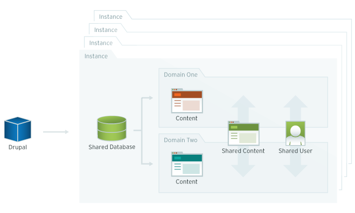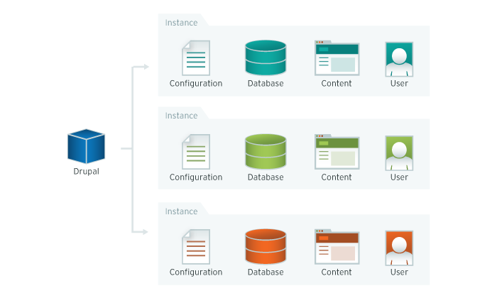 - use one Drupal installation for many sites