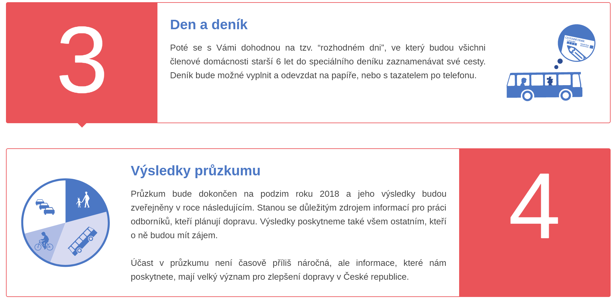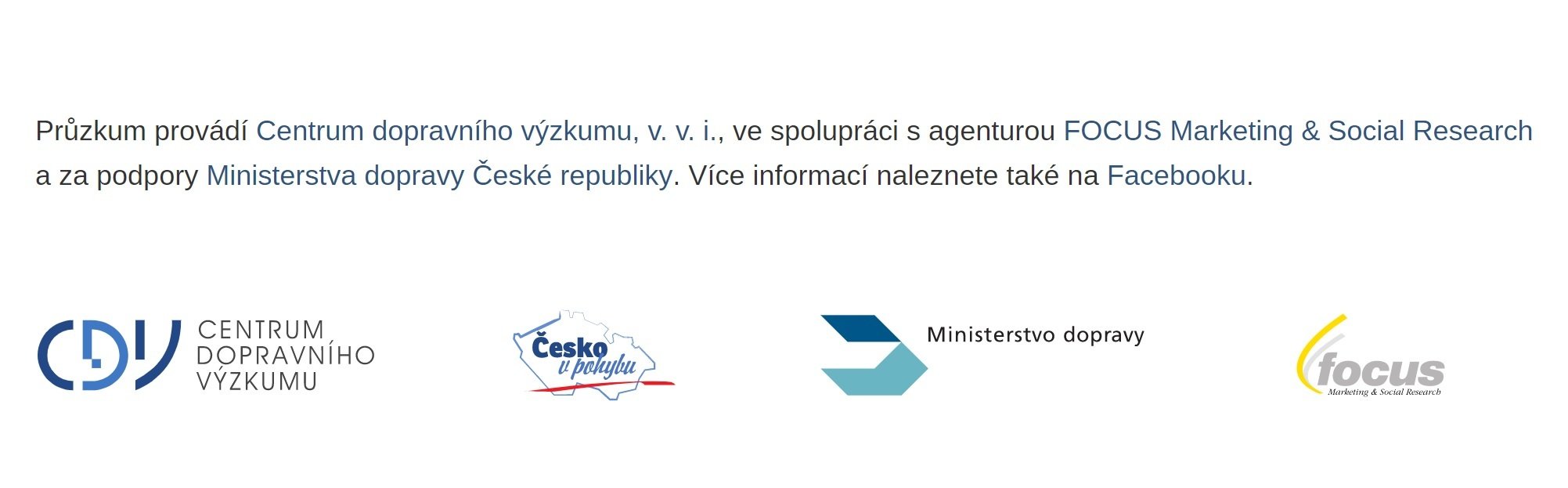 Průzkum probíhá od podzimu 2017 do podzimu 2018 a provádí jej Centrum dopravního výzkumu, v. v. i., ve spolupráci s agenturou FOCUS za podpory Ministerstva dopravy České republiky.