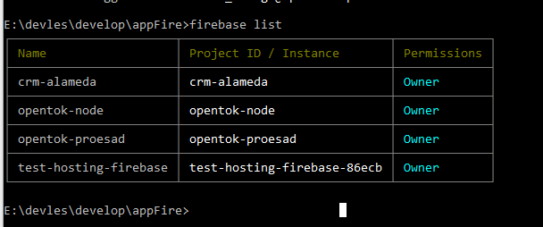 A continuación nos van a salir la lista de proyectos que tenemos en Firebase.