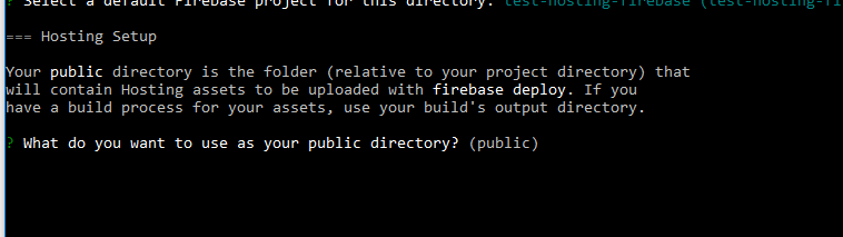 Lo siguiente que nos va a preguntar, es cual es en nuestra aplicación angular, el directorio de publicación. Por defecto, en una aplicación angular el directorio de publicación es "dist". La pregunta tiene el valor "public" por defecto. Nosotros escribimos dist.