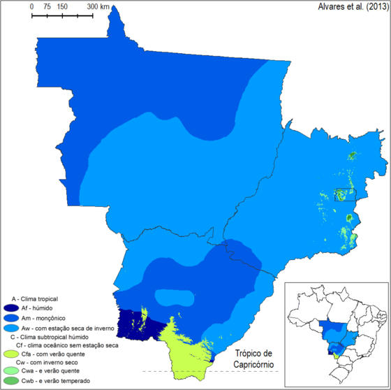 O clima da região Centro-Oeste do Brasil é o tropical, quente e chuvoso, sempre presente nos estados de Mato Grosso, Mato Grosso do Sul e Goiás. A característica mais marcante deste clima quente é a presença de um verão chuvoso, entre os meses de outubro a abril, e um inverno seco, entre os meses de maio a setembro.
