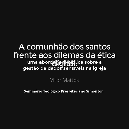 Esta pesquisa investiga os desafios críticos e as responsabilidades das igrejas no uso da tecnologia, com foco na proteção de dados sensíveis e na privacidade no contexto da comunhão cristã. Partindo de princípios bíblicos sobre ética cristã, o estudo explora como a fidelidade às Escrituras deve orientar uma gestão segura das informações no ambiente eclesiástico. Abordam-se os riscos que o uso inadequado da tecnologia ao realizar a gestão de dados e imagens, pode resultar em vazamentos, processos judiciais e, principalmente, na destruição da confiança e da comunhão entre os membros. A pesquisa examina a relação entre ética, tecnologia e comunhão cristã, apontando como a omissão às leis não só expõe as igrejas a penalidades legais, mas também viola princípios bíblicos, como o amor ao próximo. Reforça-se que o compromisso cristão deve abranger todos os aspectos da vida, incluindo tecnológicos. Por fim, propõem-se diretrizes para uma governança digital ética, visando proteger a privacidade, fortalecer a comunhão conforme a Confissão de Fé de Westminster cap. XXVI e preservar o testemunho cristão em um mundo cada vez mais tecnológico que nos leva a refletir na urgência deste tema onde sem ações imediatas, as igrejas arriscam não apenas sua credibilidade, mas também sua missão de proclamar o evangelho com integridade.
