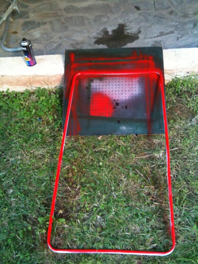 ... αρχικά "απαλλάξαμε" την απλώστρα από όλα όσα ήταν περιττά, προκειμένου να κρατήσουμε μόνο το πλαίσιο της ...
