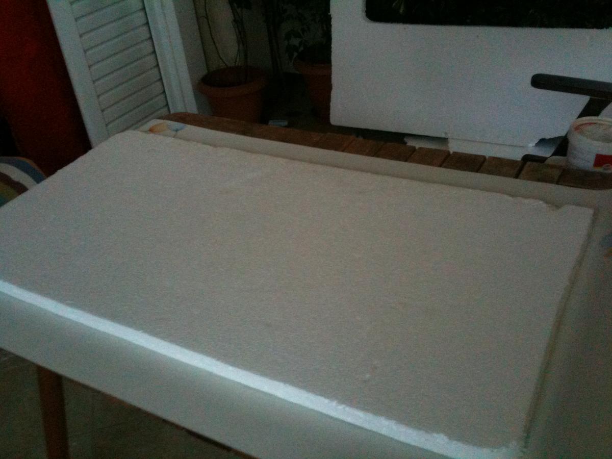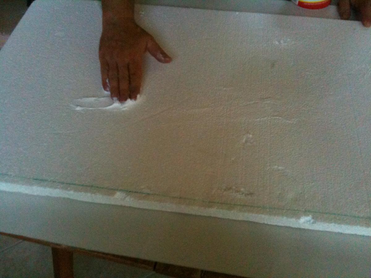 ... μετά σκεφτήκαμε ότι αν βάζαμε το φελιζόλ μέσα στο πλαίσιο σκέτο, θα γέμιζε ο τόπος "χιονάκια" από το "ξέφτισμα" του φελιζόλ ...