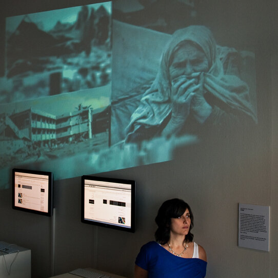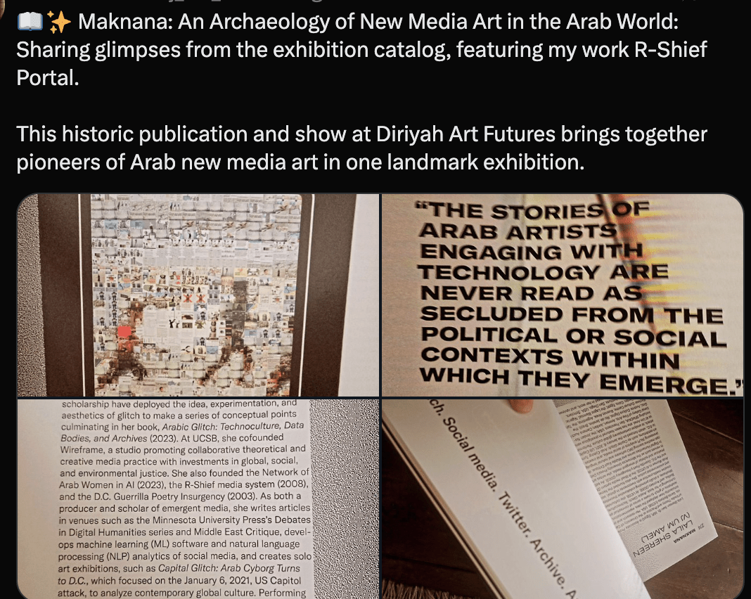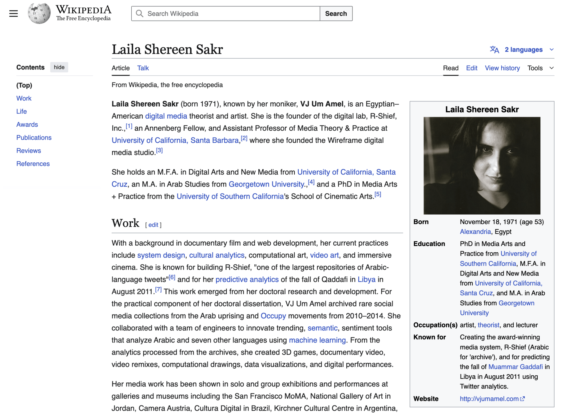 VJ Um Amel is the cyborg imagination and the virtual representation of Laila Shereen Sakr, a digital media theorist and artist. She is a creative coder and immersive storyteller known for creating the award-winning media system, R-Shief.