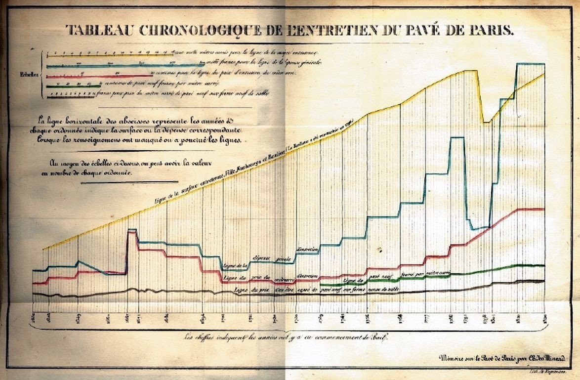 In the 19th century, the railway and canal building industries also began to build ever more complex representations of their transport networks. Famously Minard, the French engineer, developed maps (one of which is shown below) to demonstrate why charging systems on the canal should be higher for partially completed journeys.