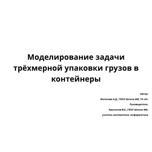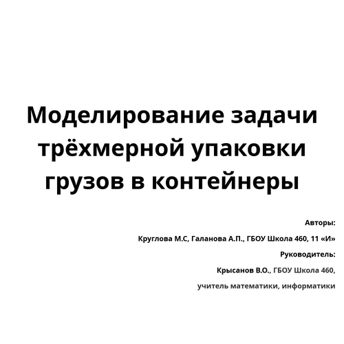 Моделирование задачи трёхмерной упаковки грузов в контейнеры