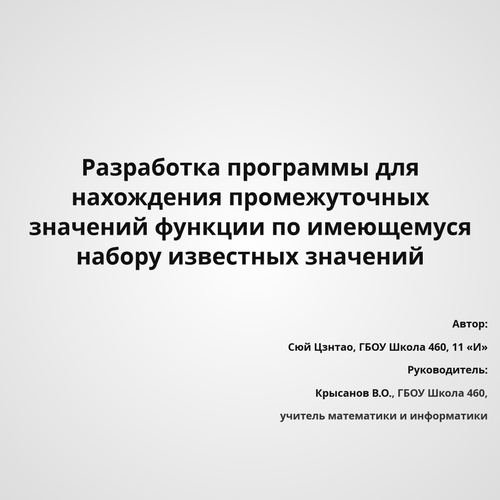 Разработка программы для нахождения промежуточных значений функции по имеющемуся набору известных значений