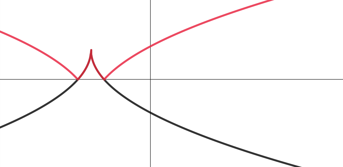 Отражаем часть графика на зеркально относительно . Часть графика на стираем.