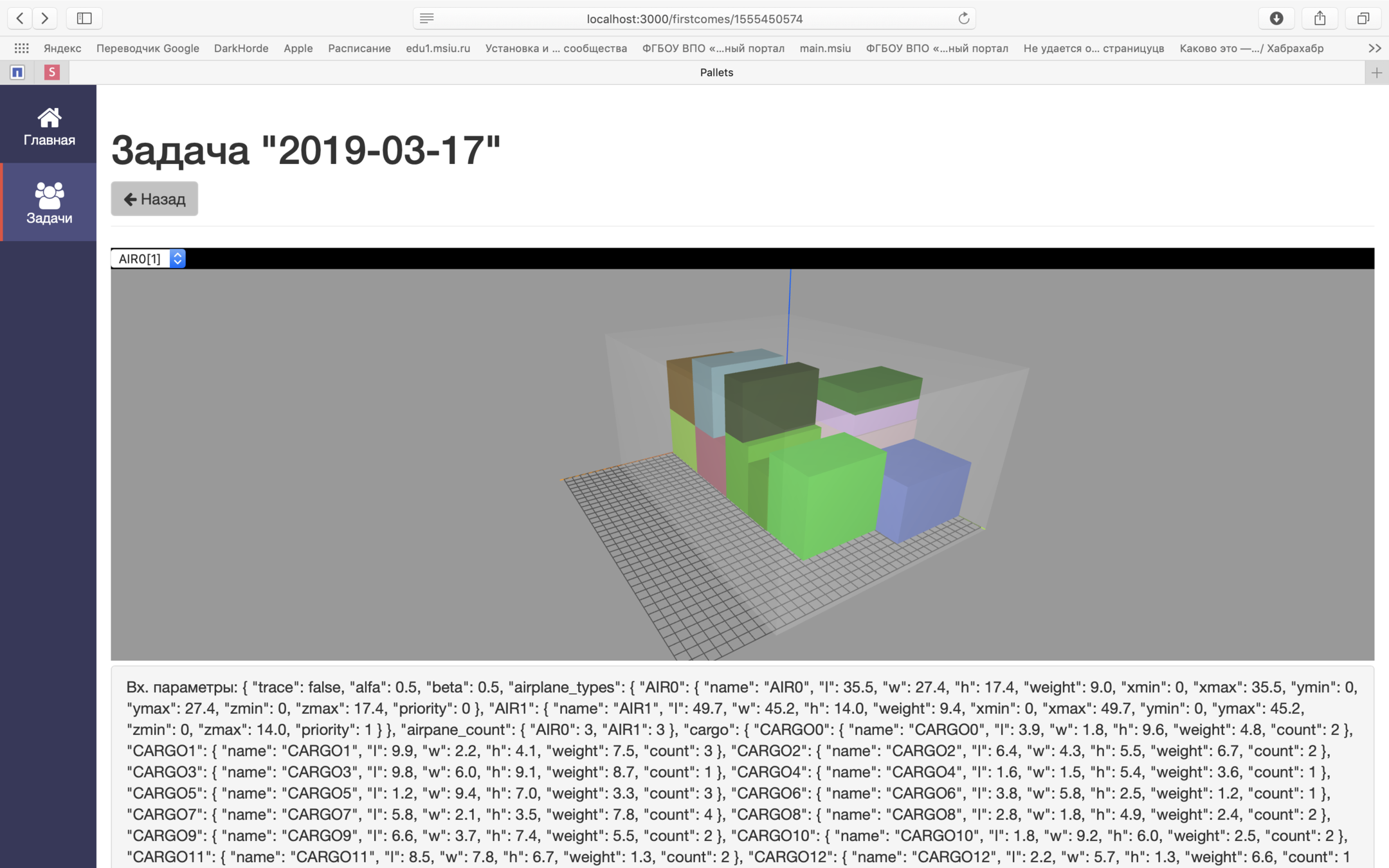 Моделирование задачи трёхмерной упаковки грузов в контейнеры