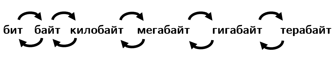 | 1 терабайт (Тб) | = 1024 гигабайта |