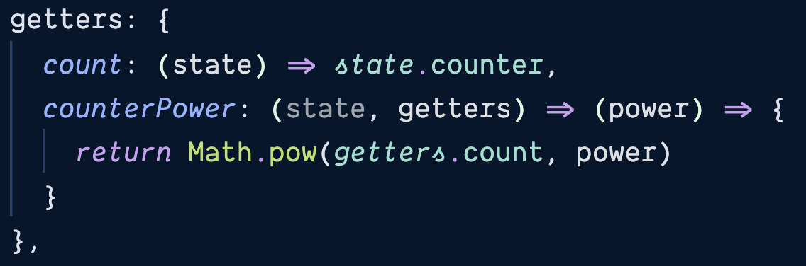 And the cool part is that we can return a function from getter to pass arguments from the component