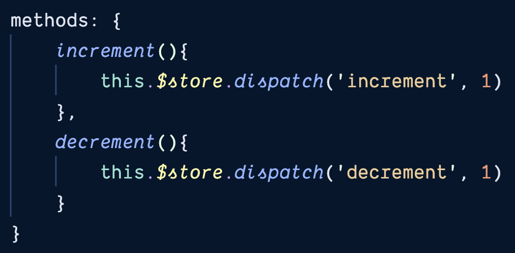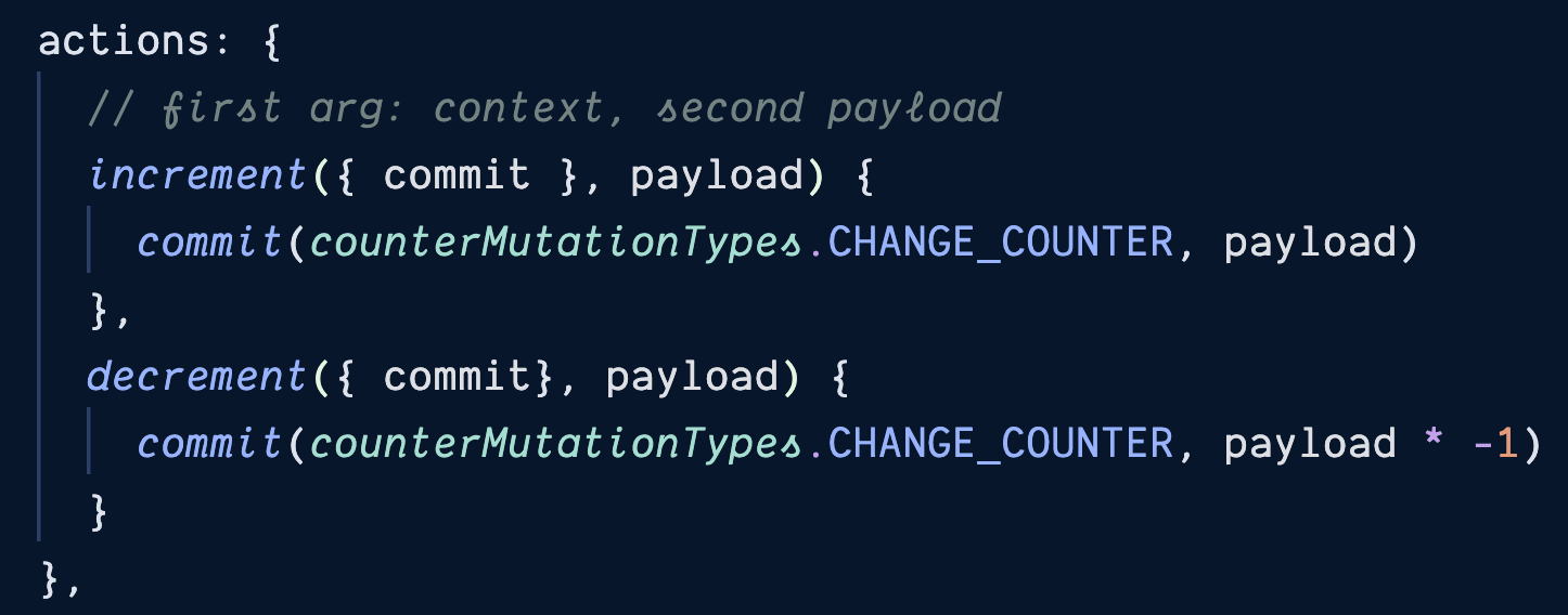 actions are dispatched using $store.dispatch('actionName', payload) or similar to mutations having object syntax